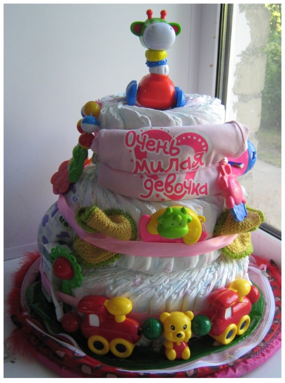 У мамы на работе сотрудница родила доченьку и вот такой тортик соорудила в подарок для малышки и ее мамочки. Это мой первый опыт, любые советы и критику воспринимаю достойно, очень бы хотелось услышать ваши мнения.