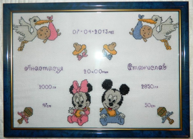 Светлана в Рукоделие 12 лет Вот какая получилась метрика для двойни Посмотрите еще 20 записей на эту тему Отменить Ответить Нина такая милая)красивая метрика! 12.07.2013 Ответить "Незабудка" прелесть 10.07.2013 Ответить Светлана спасибо!!! 10.07.2013 Ответить Анастасия отличная метрика! 08.07.2013 Ответить Светлана спасибо! 08.07.2013 Ответить Ольга Супер!!! 07.07.2013 Ответить Светлана Спасибо!!! 07.07.2013 Ответить Светлана Хорошо получилось! Только у деток же время рождения разное должно быть?:))) я тоже близняшка, с разницей в 5 минут:)))) 06.07.2013 Ответить Светлана они родились при кесарево - по-этому и время одно - ланные у самой мамы брала, как она сказала так я и вышила =))) 06.07.2013 Ответить Катерина Мило получилось, мои тоже родились 07 апреля, только 2010 года. А для кого вышивали? 06.07.2013 Ответить Светлана для малышей друзей 06.07.2013 Ответить Девочки, что нужно для росписи по ткани? Улитка Чаты Беременных Выберите чат: Январята-2026 Февралята-2026 Мартята-2026 Апрелята-2026 Майчата-2026 Июнята-2026 Июлята-2026 Августята-2026