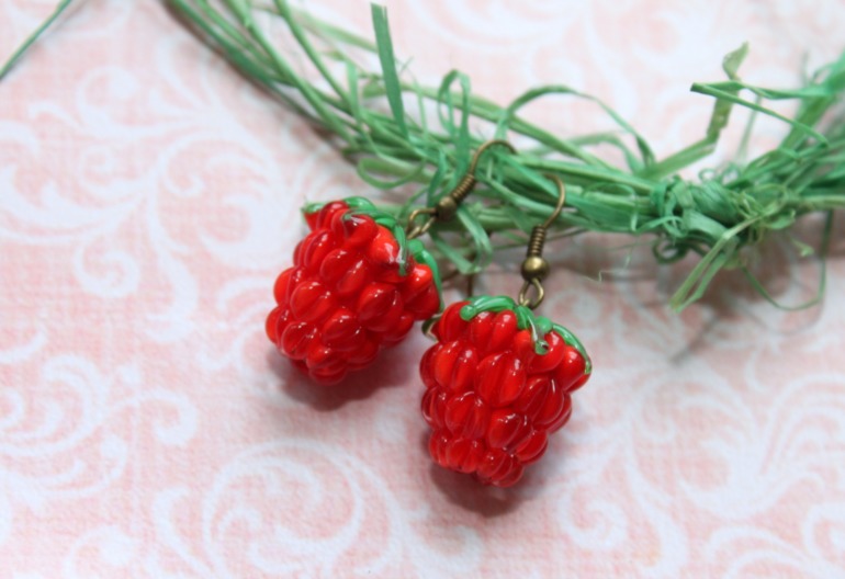 1. Серьги "Малина" Бронзовая металлофурнитура, авторский лэмпворк
