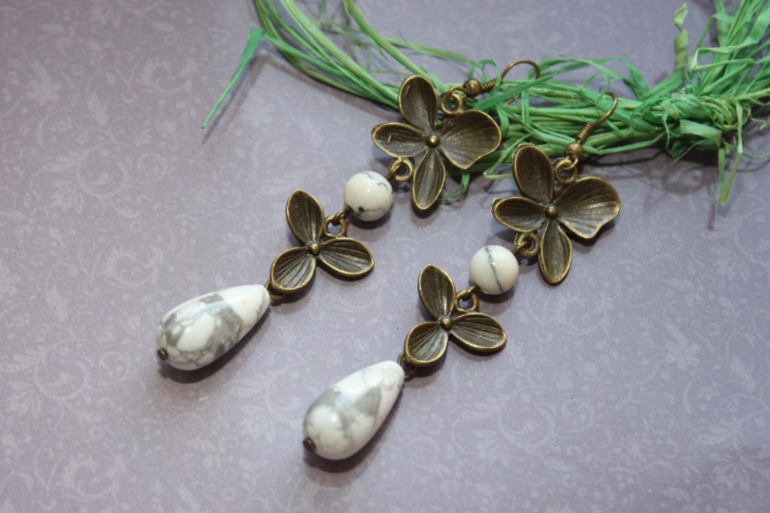 2. Серьги "Орхидеи" Бронзовая фурнитура, кахалонг, турквенит