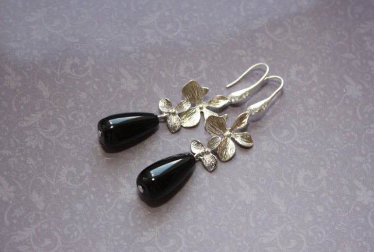 3. Серьги с агатом "Цветок орхидеи" Фурнитура под серебро, агаты