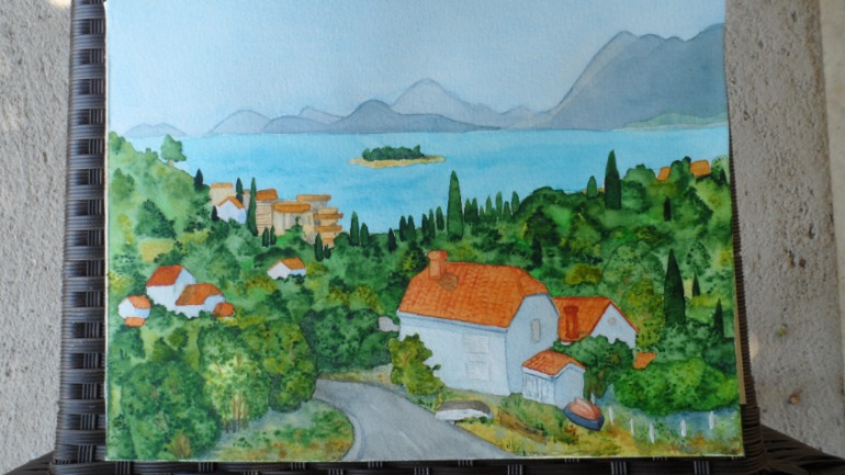 очень симпатишный вид из террасы)) картина тоже получилась интересной и главное будет хорошим напоминанием о замечательном отдыхе)))) чем нравится больше писать маслом или акварелью?)