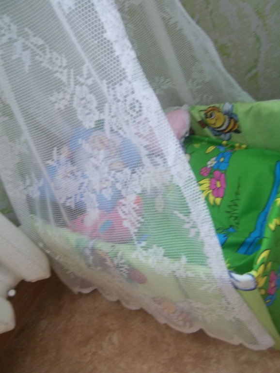 Доченькина кроватка!Теперь мы спим отдельно))) Сшила постельку для нее.