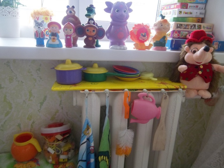 Кухонька дочина. Сделала из коробки. Есть духовка))) Там храним игрушки мягкие))))