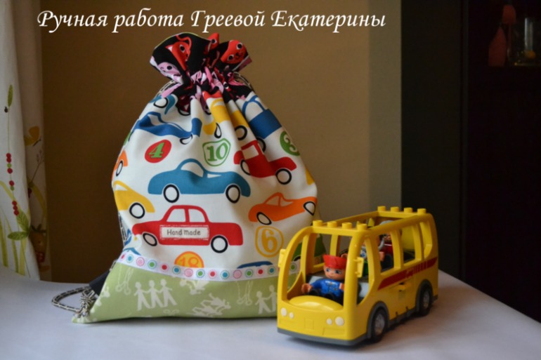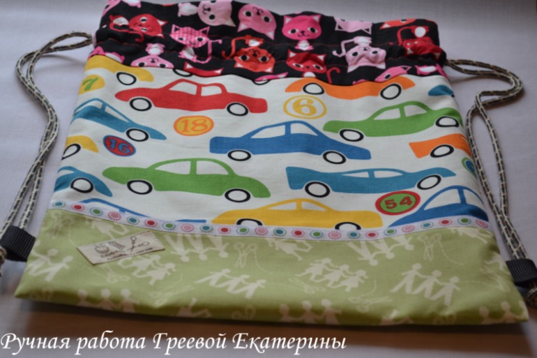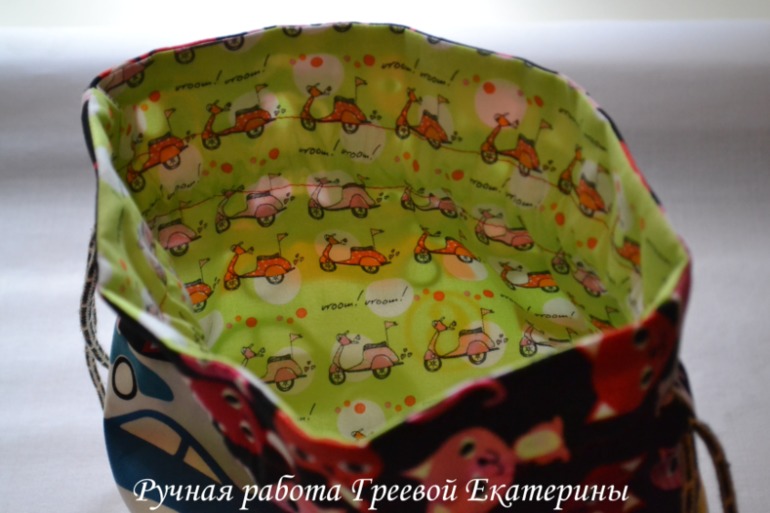 Кстати рюкзачок имеет внутреннюю подкладочную ткань!!! Я шила для своей доченьки, но она у меня МАШИНКИ тоже ЛЮБИТ!!! :)):)):))....Поэтому внутри и снаружи можно встретить ткань с машинками...