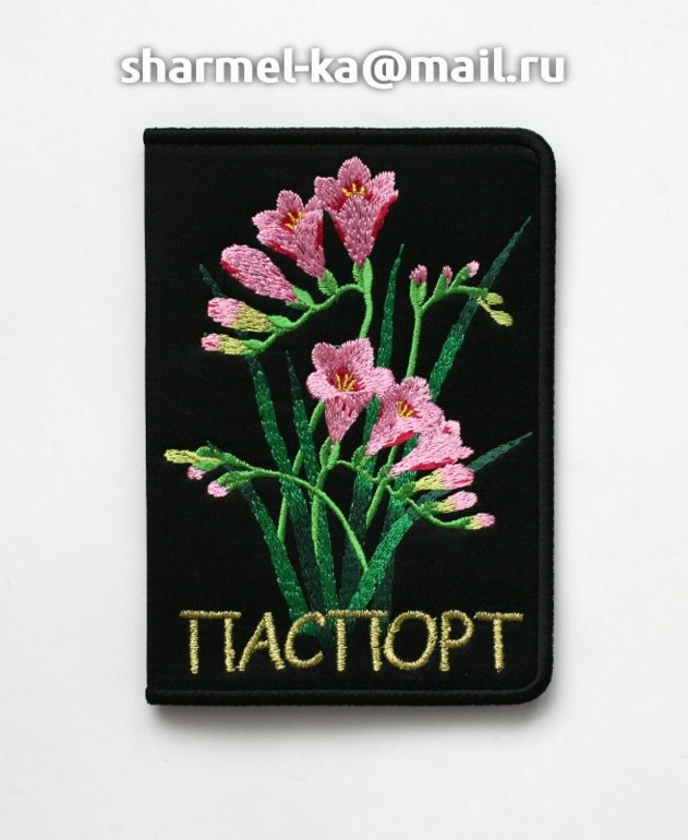 Вышитая обложка на паспорт "Фрезии" (10.07)