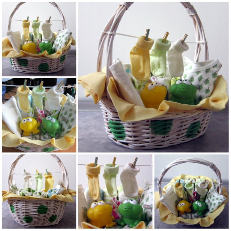 А теперь самое простое и приятное - укладываем подарки, декорируем бельевой веревкой и прищепками. Готово.