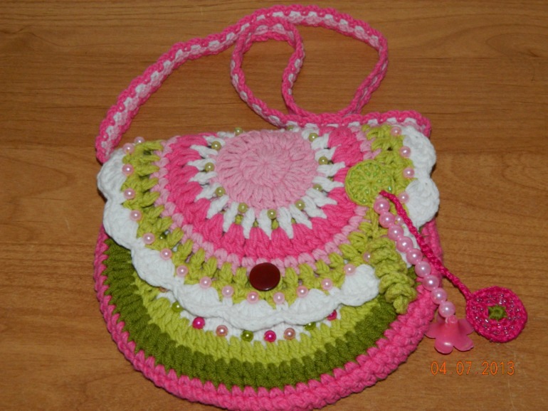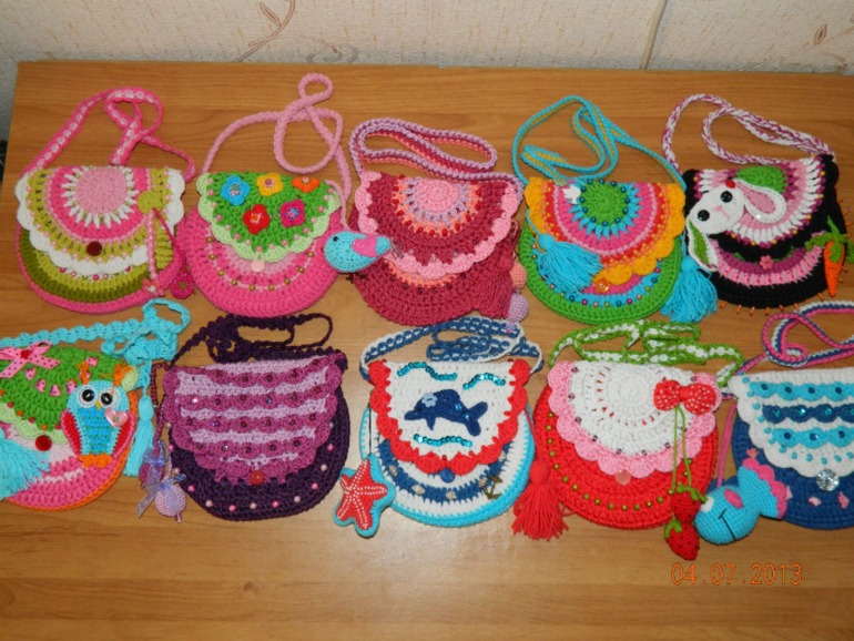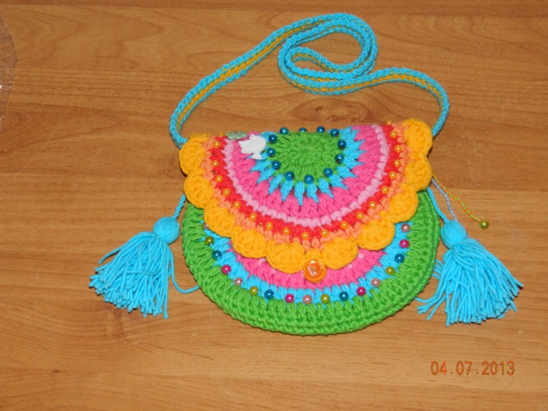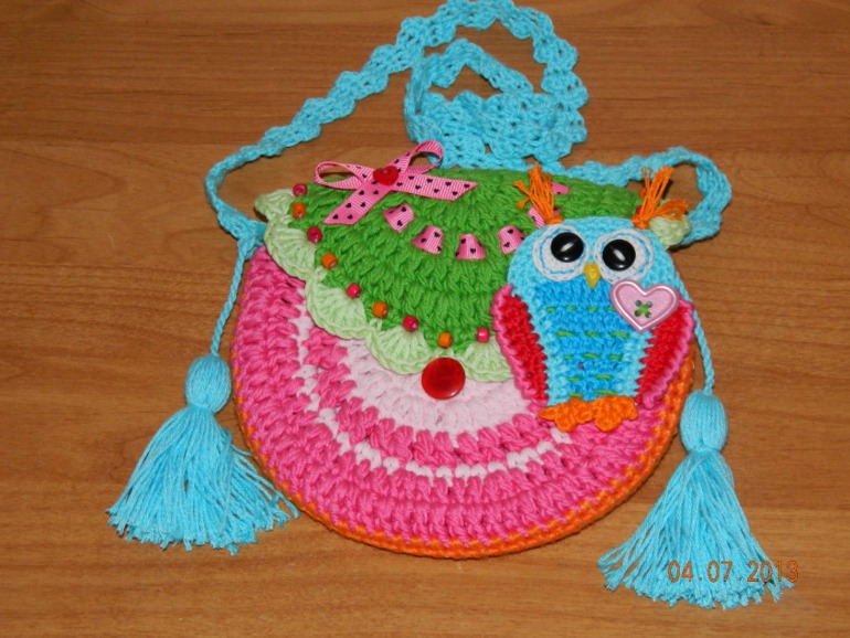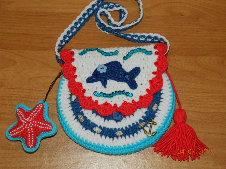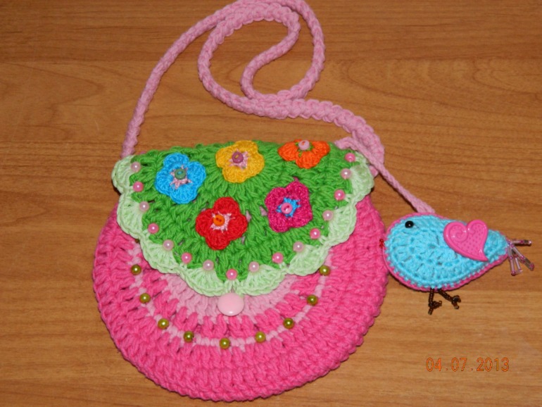 вот я зашла в очередной раз вдохновиться, вспомнила,что не похвасталась,но у меня,конечно не такая красотень получилась,но дочка эту сумку обожает!!!