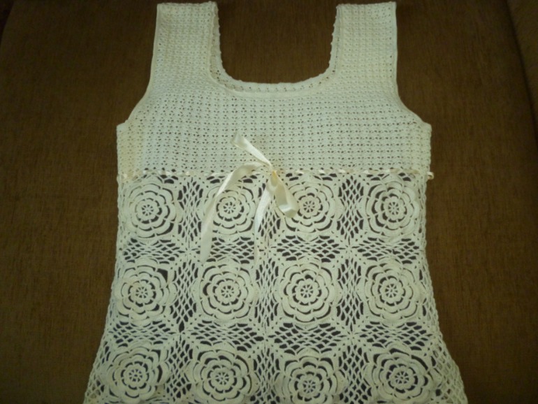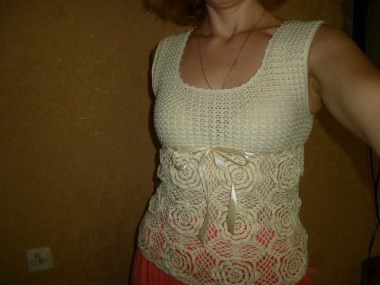 Суперска маечка!!!!!!!!Я такими же ниточками кофточку себе связала, взяла наугад и осталась ими очень довольна, правда вязала крючком №2.