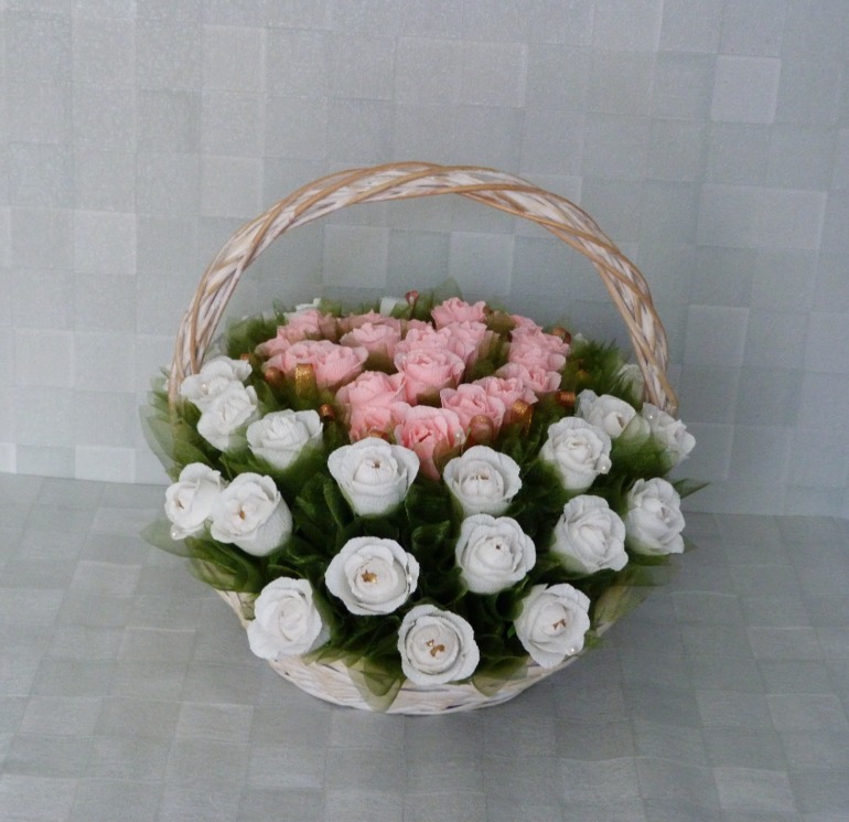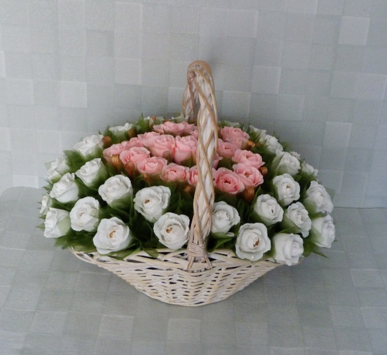 Ого,вот это корзинка,Свет,объём впечатляет,не знаю нравится ли мне на 100% форма сердцем и деление по цвету,но цветы точно хороши. Молодец!!!