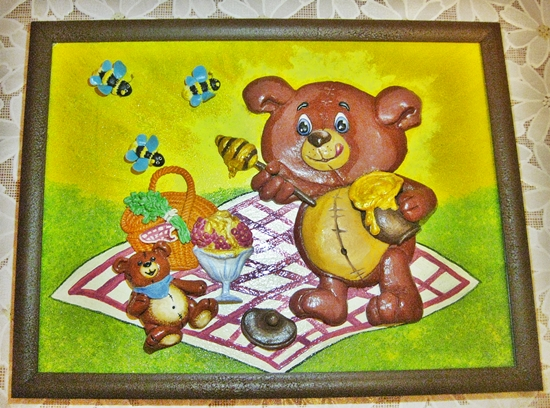 Солёное тесто (ТОЛЬКО ГОТОВЫЕ РАБОТЫ)Просмотрела я свой дневник и поняла, что не показывала вам картину, сделанную для одной очаровательной малышки. Работа получилась большая 43 на 33 см.