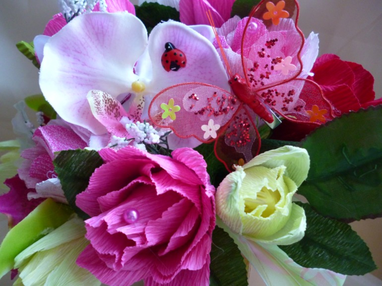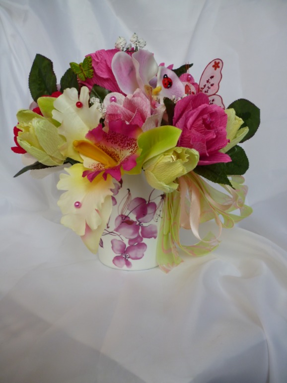 И кашпо с орхидеями и розами(орхидеи,к сожалению, искусственные,сама такую красоту делать не научилась)