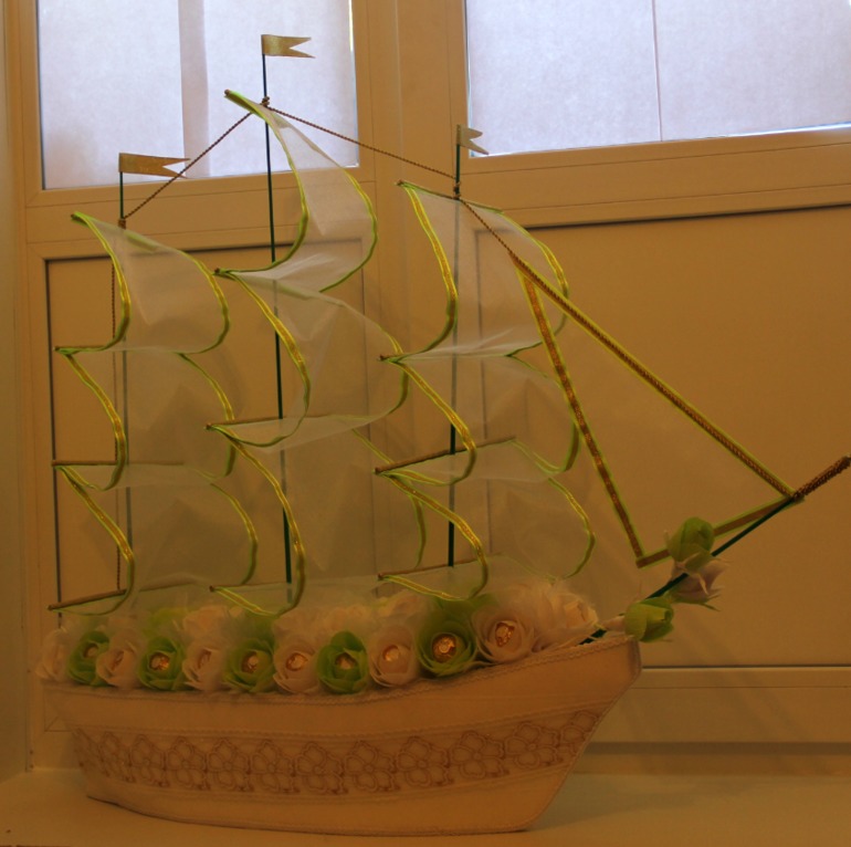 Спасибо Елена!!! Цветы шли как с конвейера это точно, заказали как всегда в последний момент. Так как корабль делала впервые, результатом довольна. Заказчица, молодые, все присутствующие были в восторге, что меня конечно очень порадовало