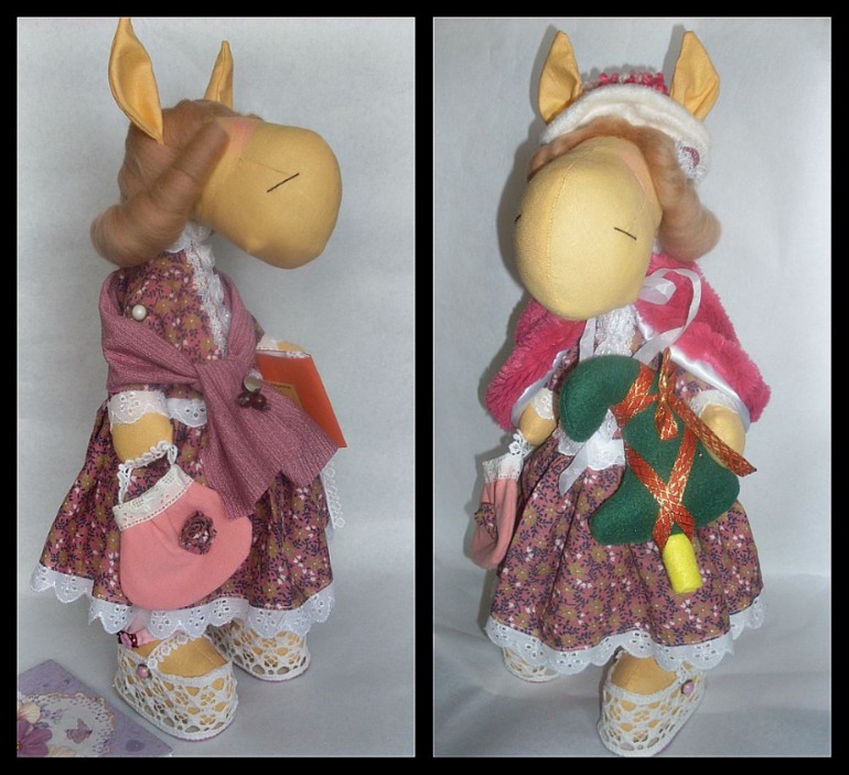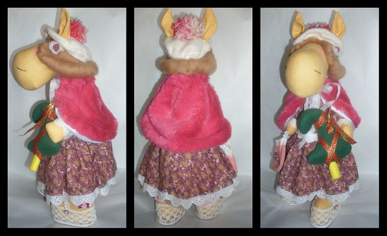 Игрушечный мир - животныеЛошадка пополнила гардероб зимним нарядом , готова встречать 2014 год, символом которого является и готова отправляться в путь, к новой хозяюшке.