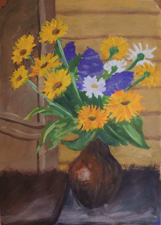 Натюрморт супер! всем бы таких натюрмортов, первых. Да еше с натуры ... Здесь и обьем вазы и такие живописные цветы ( всмысле передача цвета) Конечно вам рости и рости.Я за вас рада , я просто поклонница искасства.