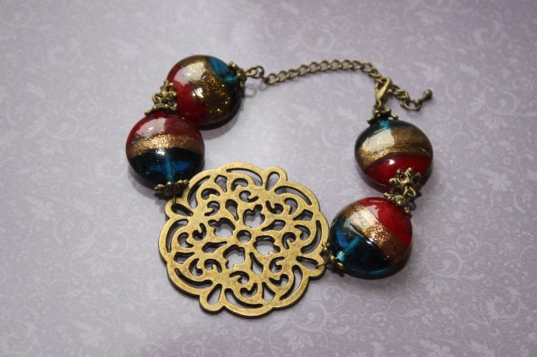 6. Браслет "Восточная роскошь" Фурнитура под бронзу, лэмпворк