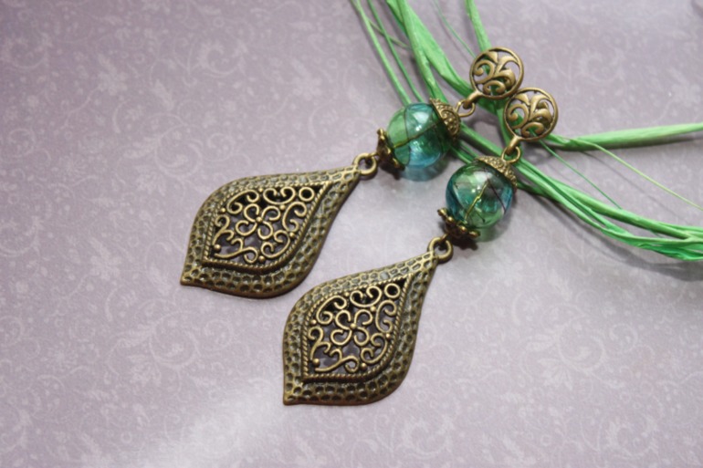 2. Серьги "Восточные узоры" Фурнитура под бронзу,лэмпворк