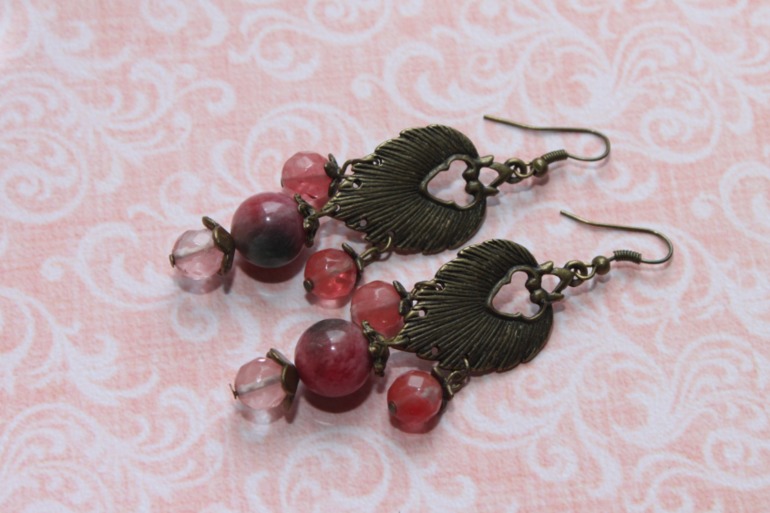 3. Серьги " Листочки" Фурнитура под бронзу, кварц, турмалины