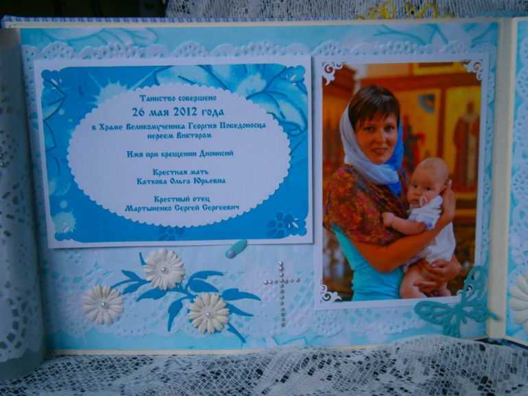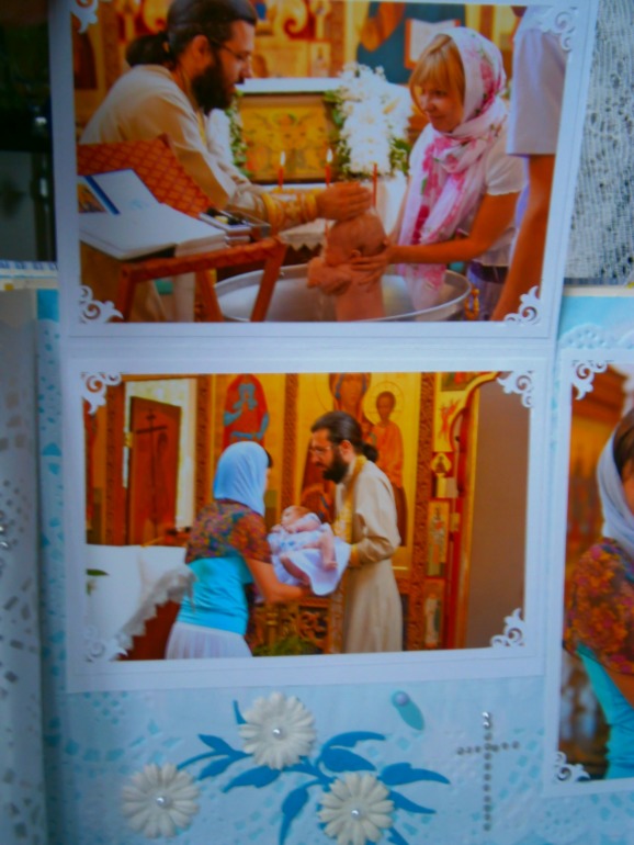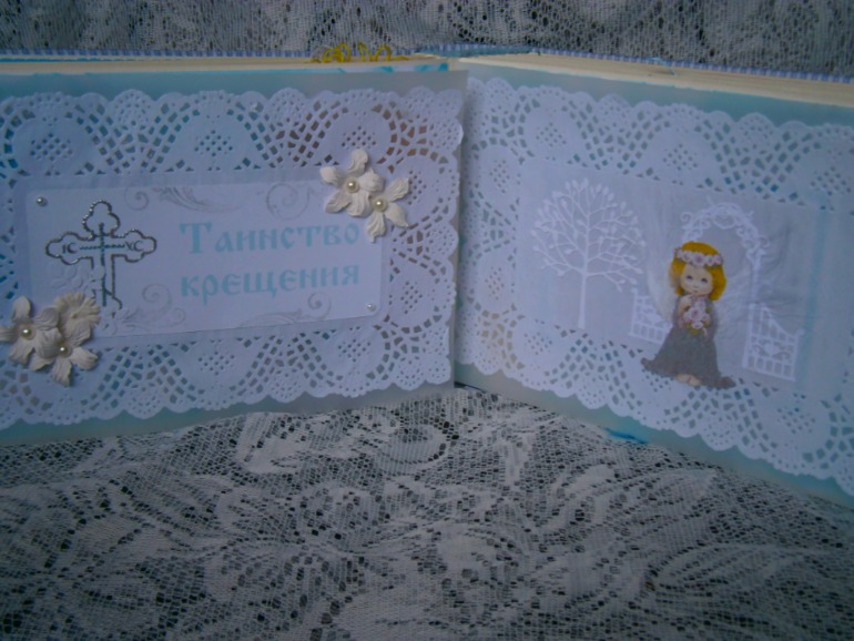Разворот про крещение. Поскольку это таинство, то я сделала страницы закрытыми
