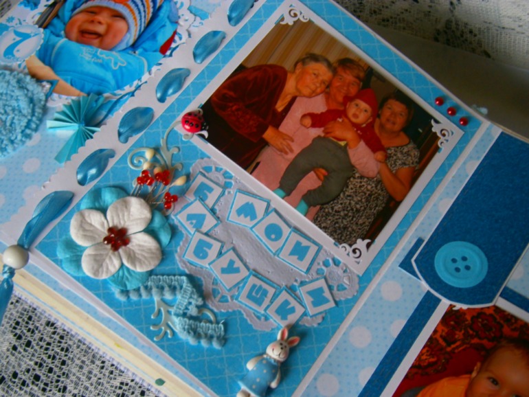 СкрапбукингВсем привет!!! Давненько я здесь ничего не писала и не выкладывала своих работ! А все потому, что делала альбом для мальчика на первый годик. Главное отличие от всех остальных заказов - это то, что делала сразу с фото! Это здорово! Мне очень понравилось! И вид совсем другой, не то что пустой альбом смотреть.