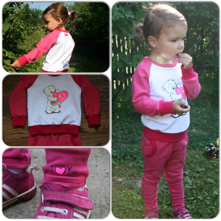 Шитье одежды, выкройки, ремонт одежды, шторы, швейные машины (уже приобретенные)Вчера у дочки появился такой комплект, в нашей любимой бело-розовой гамме:) Мишка ей сразу понравился, подходит и гладит его:) Футер 2-нитка белый и футер 3-нитка петля фуксия, кашкорсе толстенное фуксия.