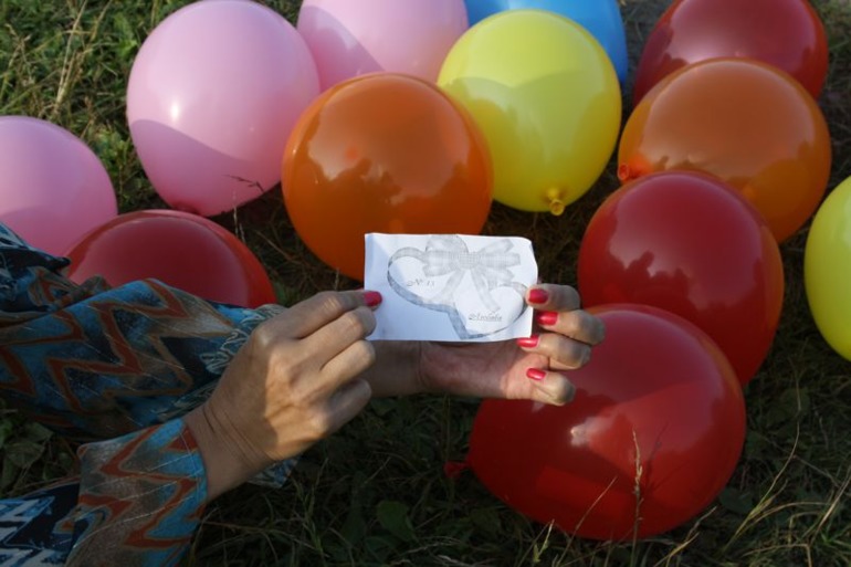 Сделали бумажки с номерами и каждую "упаковали" в шарики