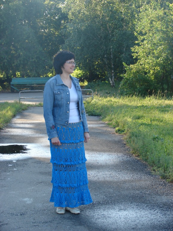 Очень долго я заглядывалась на всем известную юбку "Каскады белоснежных облаков" от Анны Мусанниковой. И я созрела. Думала, что буду вязать долго, потому как работа, домашние дела и сынуля совсем не оставляют свободного времени. Но весь процесс занял ровно три недели. 600 гр. Семеновской Кабле, крючок Кловер №2.