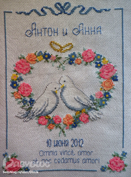 Могу предложить вышитую свадебную метрику,например: