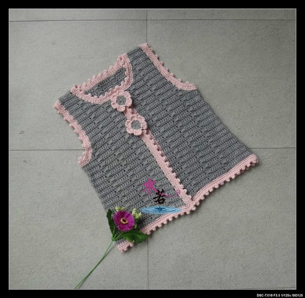 свяжите жилеточку доченьке простую, и украсьте цветочками какими нибудь,