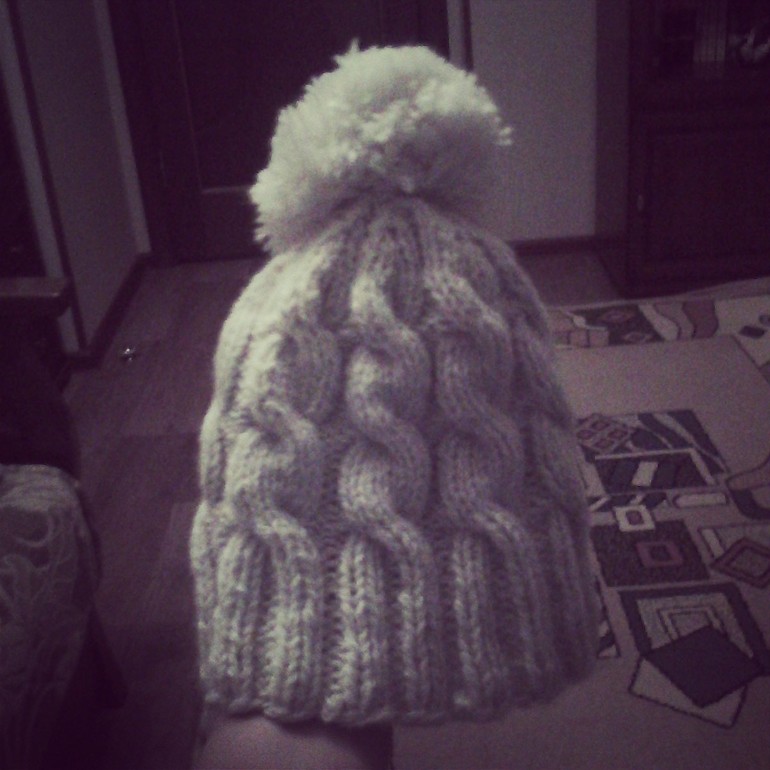 Хорошенькая шапочка!!!Только на будущее лучше сделать резинку так, что бы она переходила в косы, граница между резинкой и косами в глаза бросается.