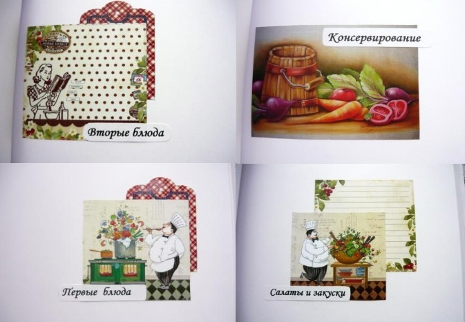 СкрапбукингКулинарная книга для записи любимых рецептов выполнена с нуля, коптский переплет, мягкая обложка. Формат А 4, 300 страниц, 6 разделителей: первые блюда, вторые блюда, салаты и закуски, выпечка и десерты, напитки, консервирование.