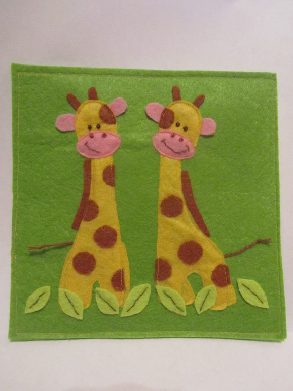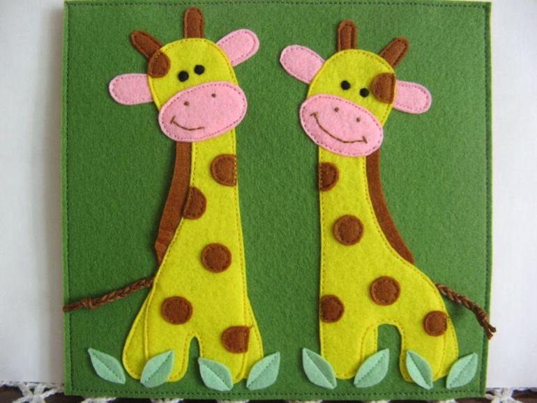 Детали, что находятся справа и следа от деталей тел жирафиков - это задние лапы. В принципе, если вы не хотите заморачиваться, то можно и без них шить, но с ними, мне кажется, как-то объёмнее) Вертикальные полосочки - это грива. Мы её ножничками немного порежем, чтобы она лохматая была.