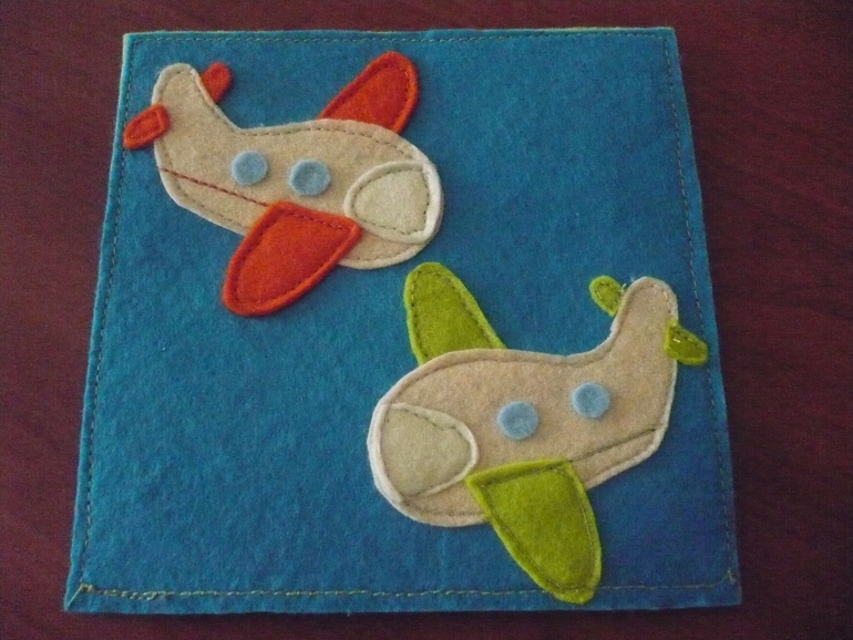 Окошки очень маленькие, я их просто приклеила. Также, проложила строчку вдоль всего самолёта над крылом.