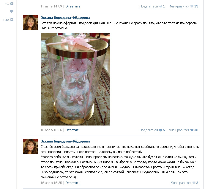 Вот такой нежный торт из памперсов для новорожденной малышки Оксаны Фёдоровой.