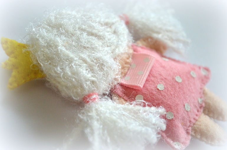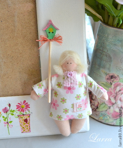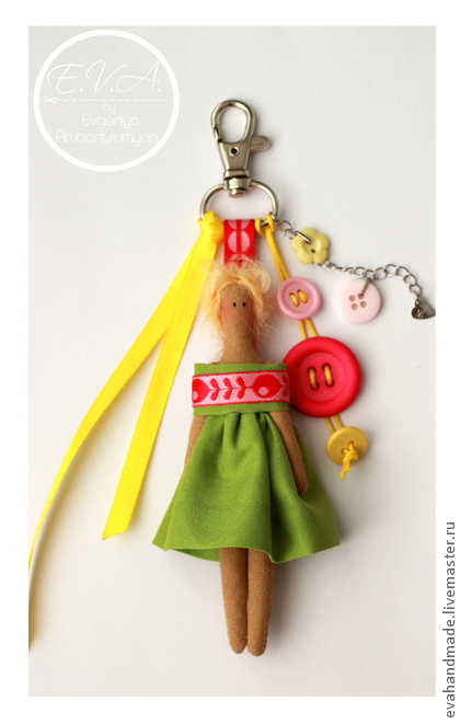 Сзади петелька для шнурочка.Ева, если нравится куколка-пишите в ЛС, договоримся о доставке.Если есть какие-то особые пожелания-готова выслушать и исправить)) Можем сделать платье другого цвета, можно имя вышить на платьишке...