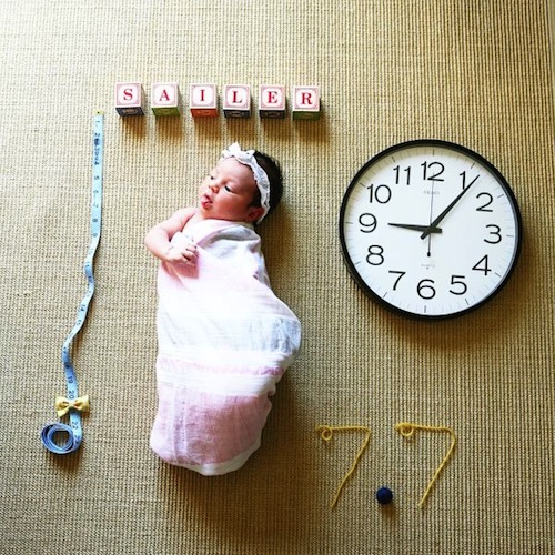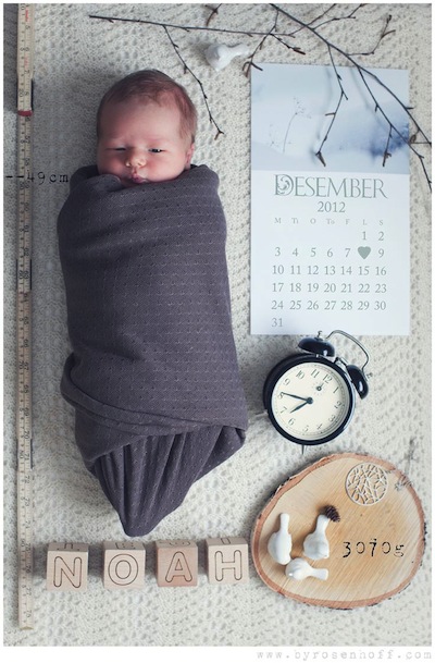 На календаре другим цветом выделю дату рождения, на гире укажу вес малыша и на часах врем рождения. А вот насчет роста не могу ничего интересного придумать.... Может вы подскажете?