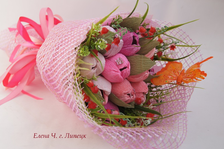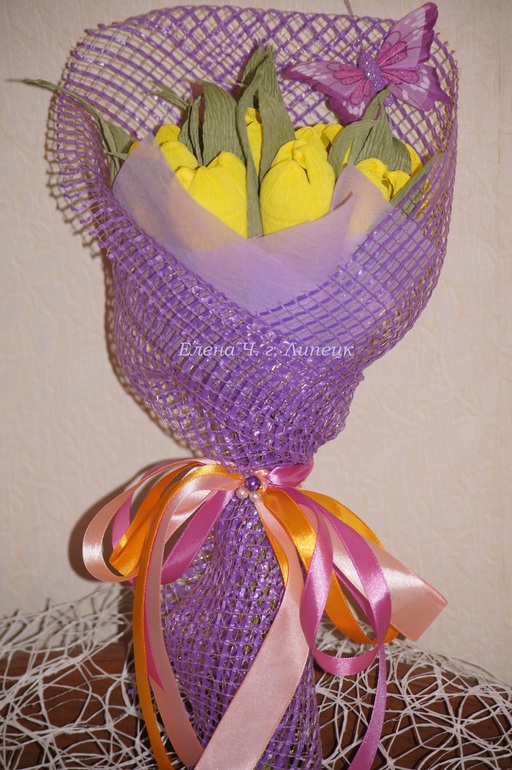 http://ytenok.gallery.ru/watch?a=bc8B-eKtI Ссылка на МК Ирины Цыбун, по ручному букету. Основное это как микрофон сделать, а уж, чем его наполнить, это уже полет фантазии. Удачи!
