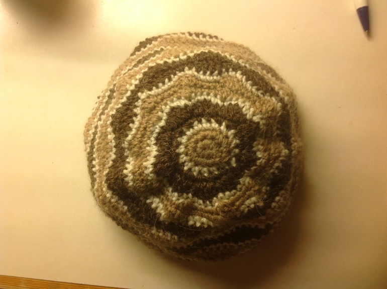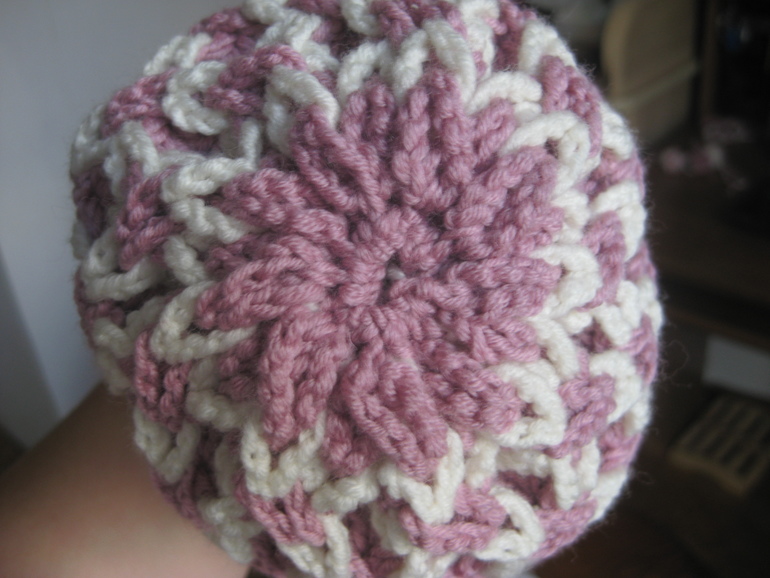 Извиняюсь за задержку с ответом, только что за комп села...У меня тоже дырочка была по серединке, я её просто ниточкой стянула и получилось неплохо. А у вас вообще получилось как цветок хризонтема! Очень даже красиво!Я вот теперь тоже "загорелась" такую шапочку связать... Где-то видела МК по такому узору совсем недавно - буду искать по закромам своим захомяченным...Вот сфотографировала "свою" макушку: