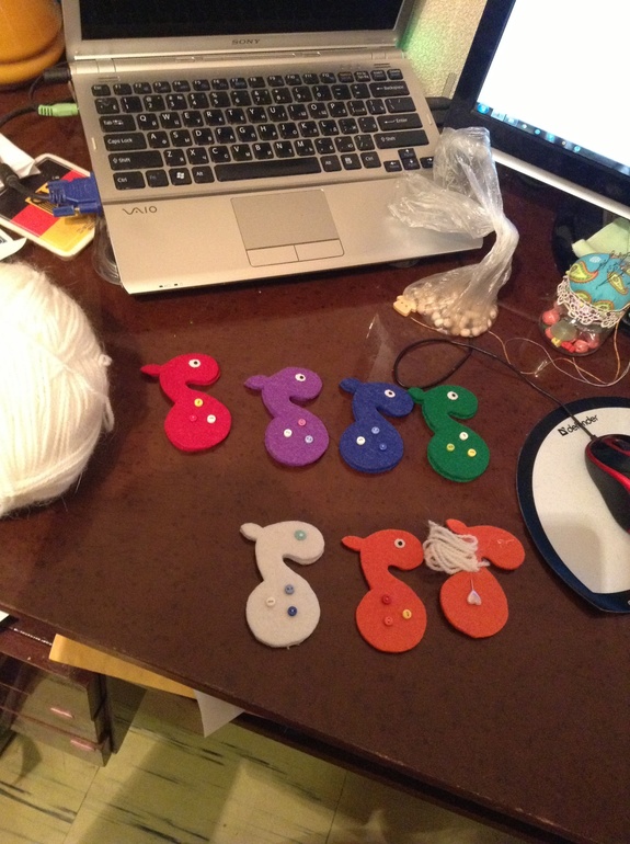 хорошенькая! а я сейчас маааленькие игрушечки шью, 25 штук 5-6 см, для ёлки из фетра, на стену