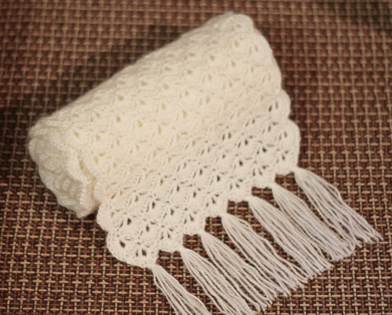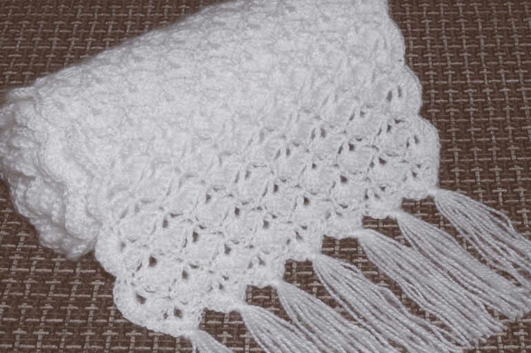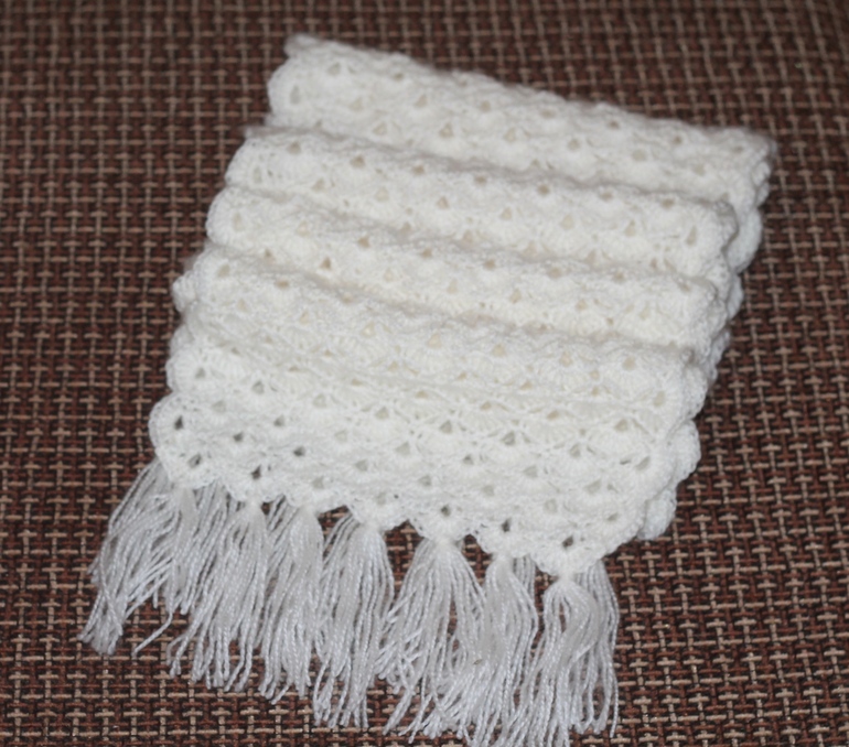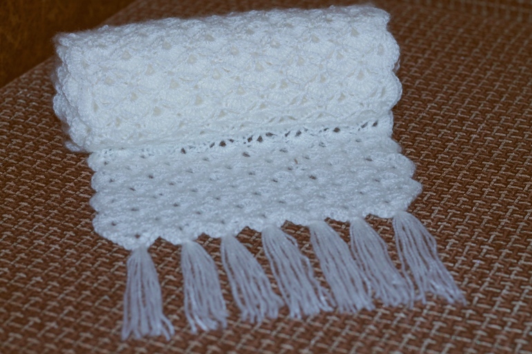 Вот результат моих трудов - шарф "Белоснежная радость". Размер: длина-1,5м, ширина-25см.