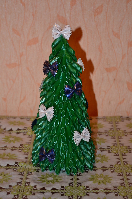 Я ёлочку из рожек жидкими гвоздями делала, рожки склеивались быстро. Всю поделку за 30 минут сделали с сыночком.