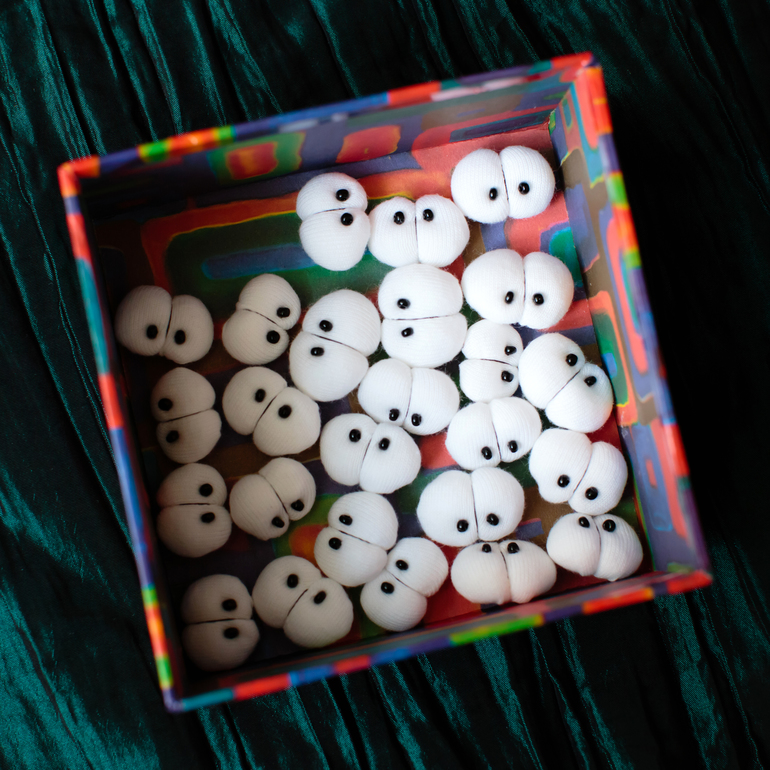 только сильно не набивайте, иначе они будут вытаращенные)у меня муж как-то увидел коробочку с глазами, долго смеялся