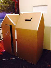 О, Женечка, молодец! а я своему квартиру двухкомнатную замутила из коробок от холодильников;))) вот мне уже надоела, теперь не знаю как уговорить выкинуть;)))) места занимает жуть, а друзья смеются у вас дом в доме;))