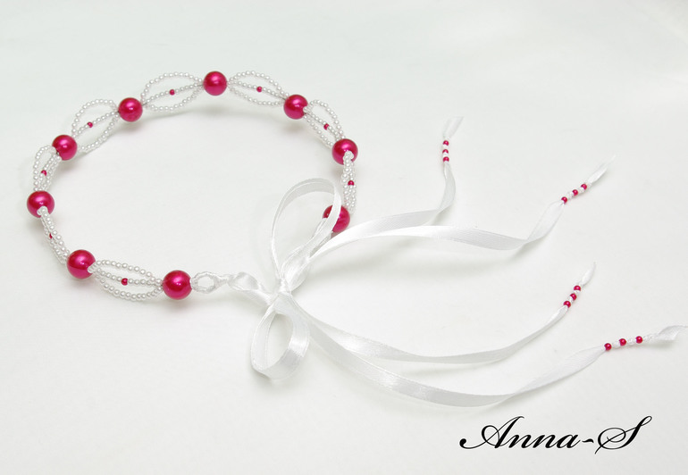 Нет , веночек на проволочном каркасе , а ленточки служат для регулировки размера.Ленточки крепятся вот так ;