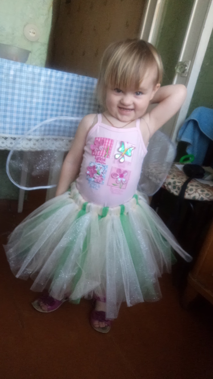 Этот костюм мухи-цокотухи на Соне двух лет для девочки четырёх,мысленно длину убирайте