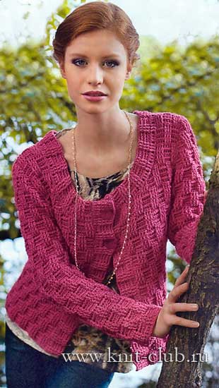 Я недавно вязала жакет детский,мне понравился результат, можно на взрослый переделать,если хотите,посмотрите в категории "мои работы",там есть схема,вдруг "оно")