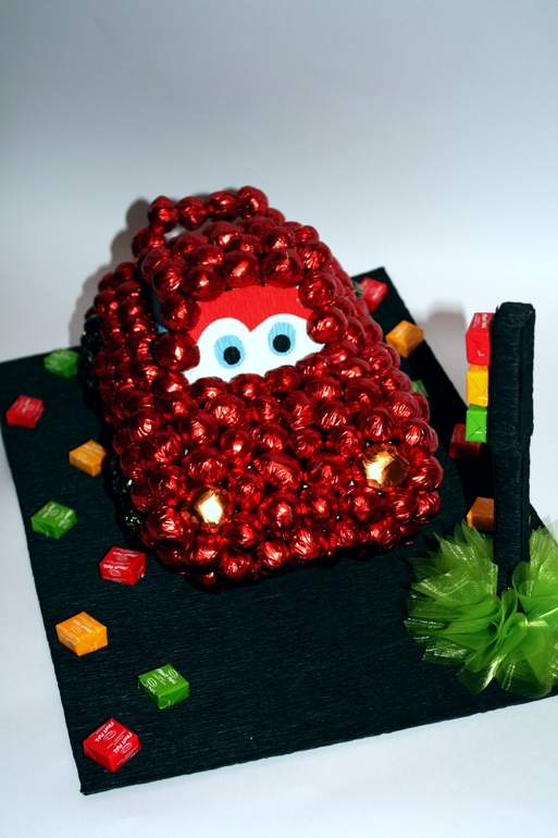Юль,насчет цены не подскажу,но конфет тут очень много,если по бамперу даже посчитать(более 40 конфет,это где-то грамм 400,наверное,марсианка в принципе лёгкая,ну,1кг точно,наверное,есть,это рублёв так 200-210)-машинка,конечно,не айс,я такие не люблю,это ребенку?(просто многие типа таких делают,только тачки для детей),мне не нравятся,но клиент,наверное,прав. Основу думается из пеноплекса можно вырезать,просто из картона неустойчиво будет,если только напихать туда чего.