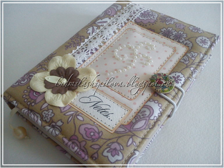 Блокноты формата А6 (10х15 см.),блок 100 листов (200 страничек) тонированных в кофе,закладка - лента атласная с бусинкой,обложка тканевая (сатин) мягкая,проложена синтепоном. Из украшений на обложке хлопковое кружево, аппликация из полу жемчужин, цветочки, анкер и деревянная пуговица, выполняющая роль застежки.