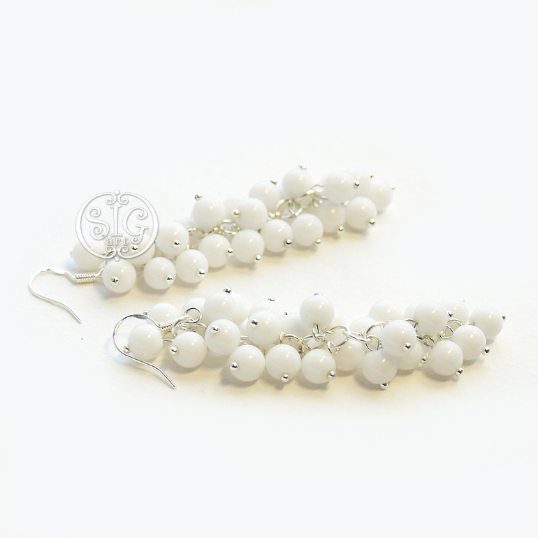 Нежные серьги-грозди из белого агата.