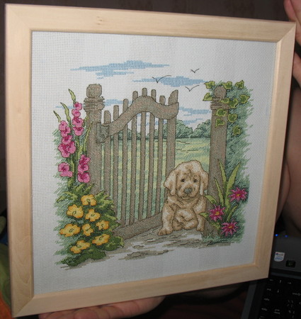 Когда увидела этого щенка, просто не смогла остаться равнодушной! Когда у меня будет собственная прихожая, обязательно туда его повешаю :) Так как рамка со стеклом, пришлось снимать с угла, чтобы не было бликов от вспышки :)